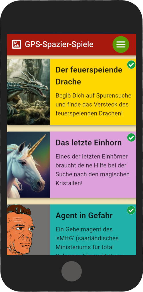 Seit Sommer 2023 gibt es die GPS-Spazier-Spiele, die zu einem etwas anderen Spaziergang einladen! Das ganze ist ein kleines Softwareprojekt, das dazu motivieren soll, mit dem Handy auch mal aktiv zu werden und nicht nur auf einer der zahlreichen Plattformen anderen bei ihrem Leben zuzuschauen.