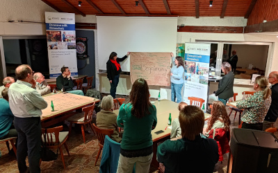 Nach einer kurzen Einführung in das Projekt KlikKS von Simone Burgheim-Gousis verteilten sich die Gäste nach eigenen Interessen an die unterschiedlichen Thementische. In produktiver Atmosphäre wurden dann Ideen gesammelt, was in unserem Ort für das Klima getan werden könnte. Im Anschluss an die Ideensammlung wurden dann die einzelnen Ideen in großer Runde vorgestellt und von allen gewichtet, um die für uns wichtigsten Themen zu isolieren.
